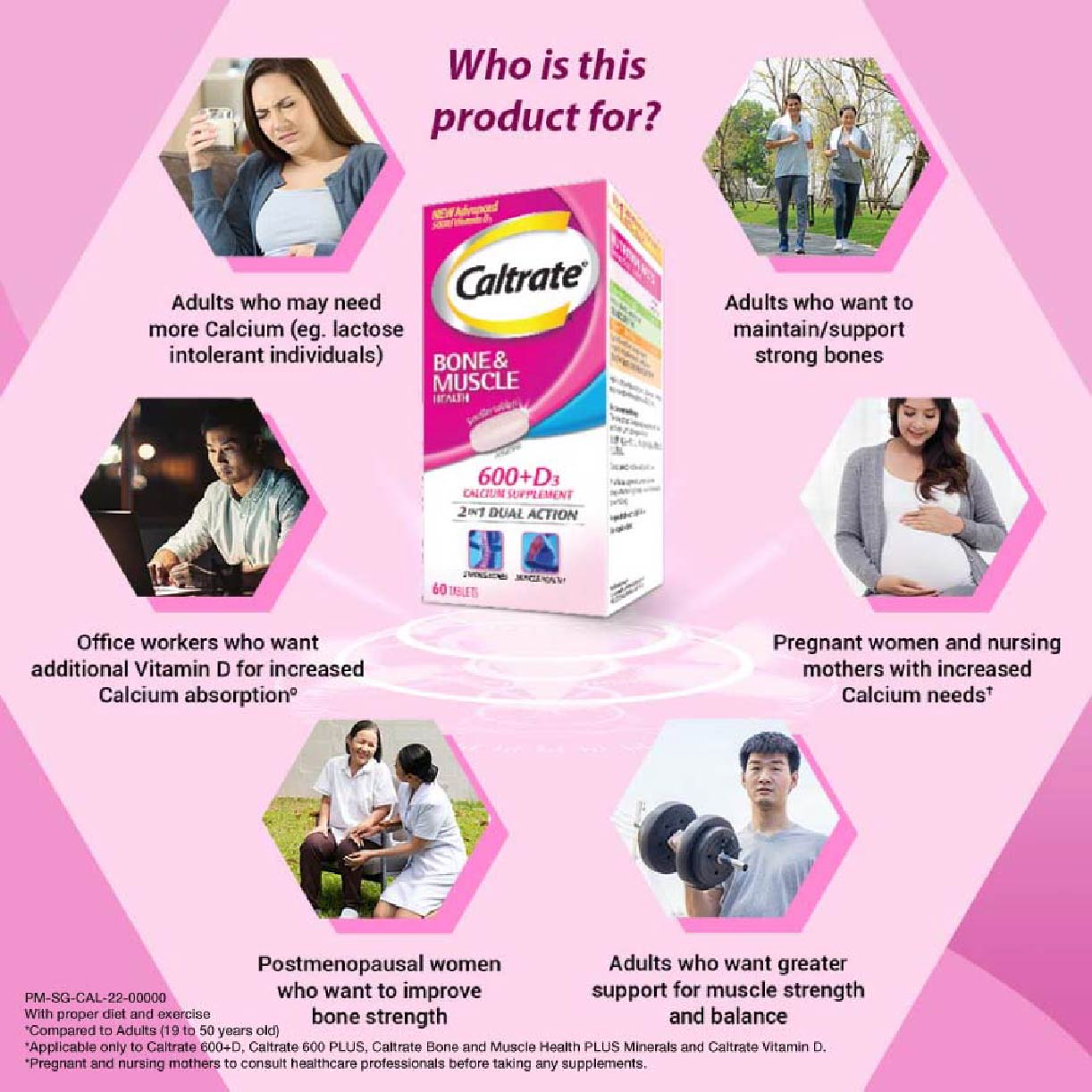 Caltrate® Bone & Muscle Health contains 600mg of Elemental Calcium for bone health and 400IU Vitamin D2 to help muscle health.
