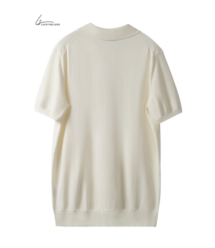 100% Cotton Thin Short Sleeve Button Lapel Polo Shirt Knitted Business Casual Slim Fit Men's T-shirt