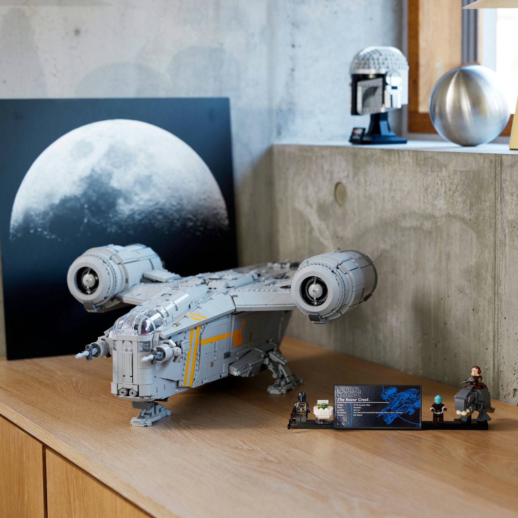 The set includes The Mandalorian, The Mythrol and Kuiil LEGO® minifigures, a Grogu LEGO figure in a pram, and a buildable Blurrg LEGO figure that can fit inside The Razor Crest’s cargo compartment.