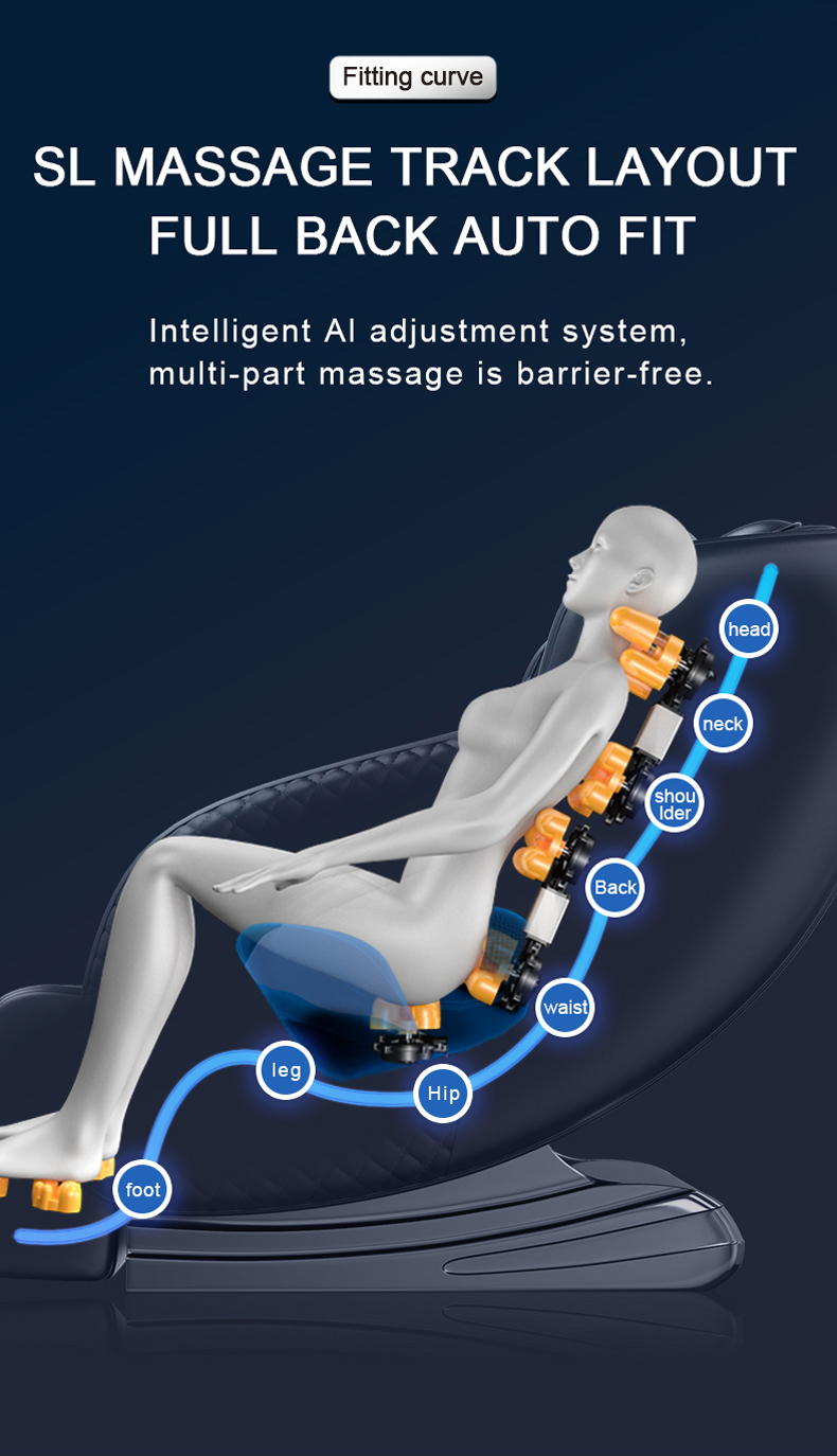 * SL massage track l ayout * Full back auto fit * Intelligent AI adjustment system * Multi-part massage is barrier-free