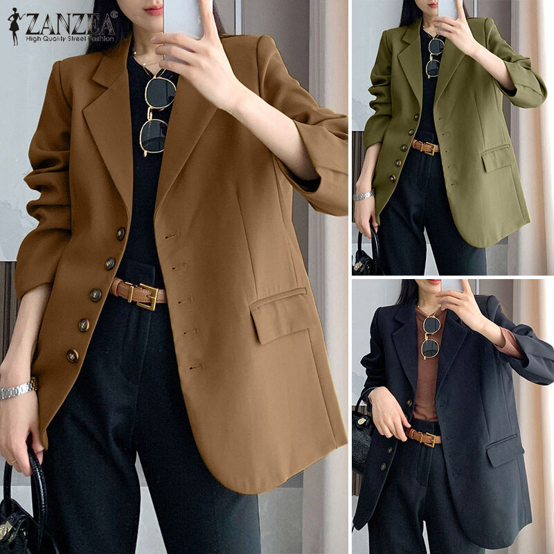 ZANZEA Women's Fashion Commute Single-Breasted Suits Business Leisure Lapel Full Sleeve Blazer #11