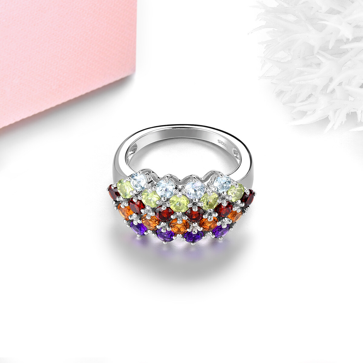 Lohaspie Jewelry Real 3 Carats 925 Silver Ring With Gemstone Natural Peridot Garnet Ring Colorful Gemstone Ring Garnet Ring For Women Jewelry Christmas Gift