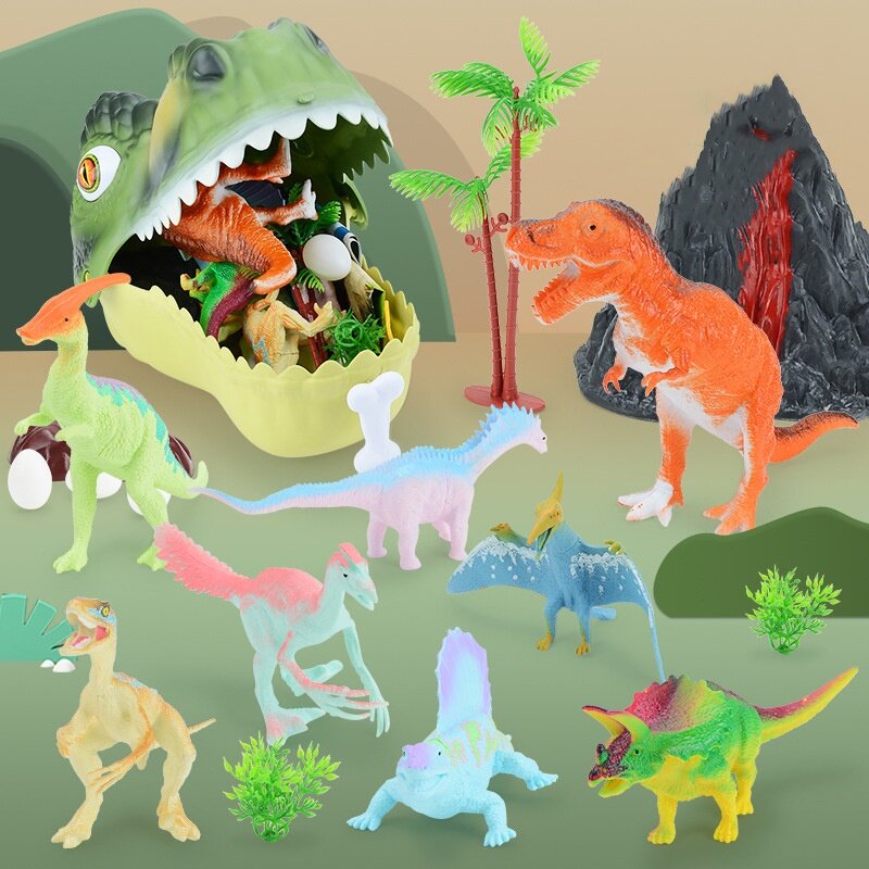 HYG Dinosaur head cover toy 16PCS Large Dinosaur Head Storage Toy Jurassic World Tyrannosaurus Rex Model Set Scene Can be a storage box kid‘s toy boy and girl gift