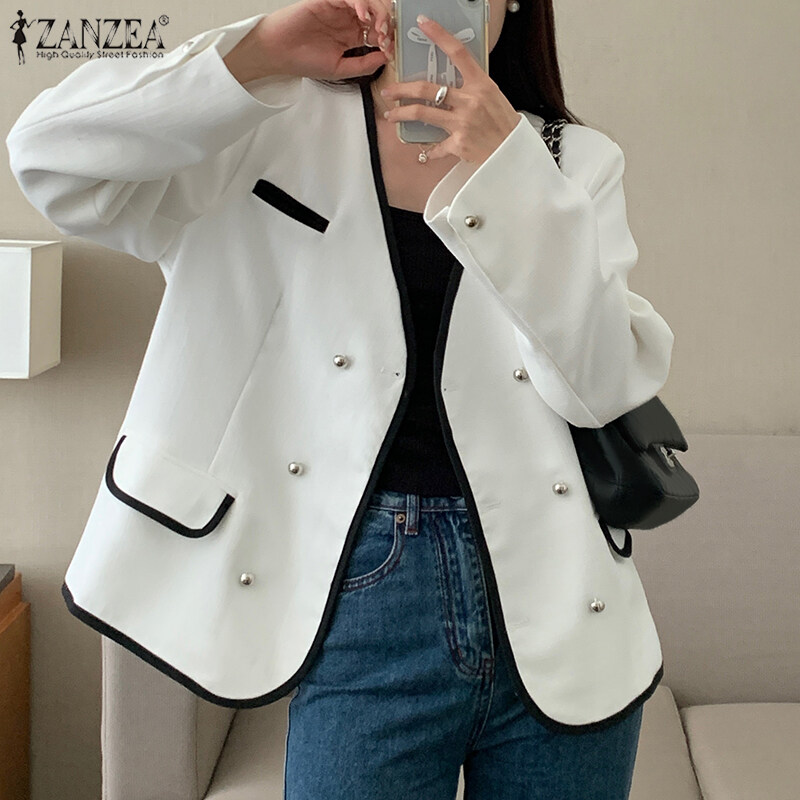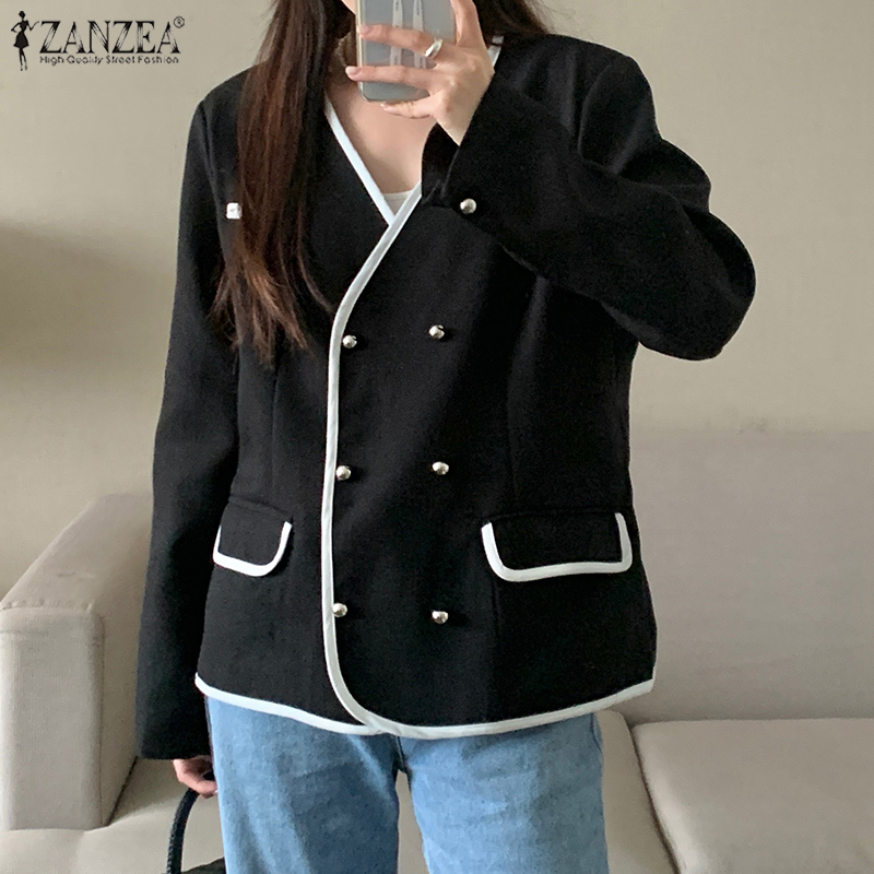 ZANZEA Korean Style Women's Elegant V-Neck Long Sleeve Blazer Office OL Double Breasted Suits #10