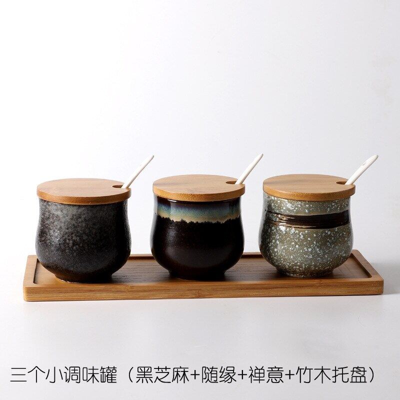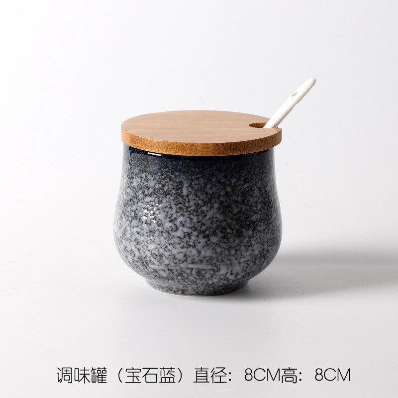Creative Japanese-Style Ceramic Seasoning Jar Set Restaurant With Lid Spoon Salt Pepper MSG Jar Home Kitchen Seasoning Bottle