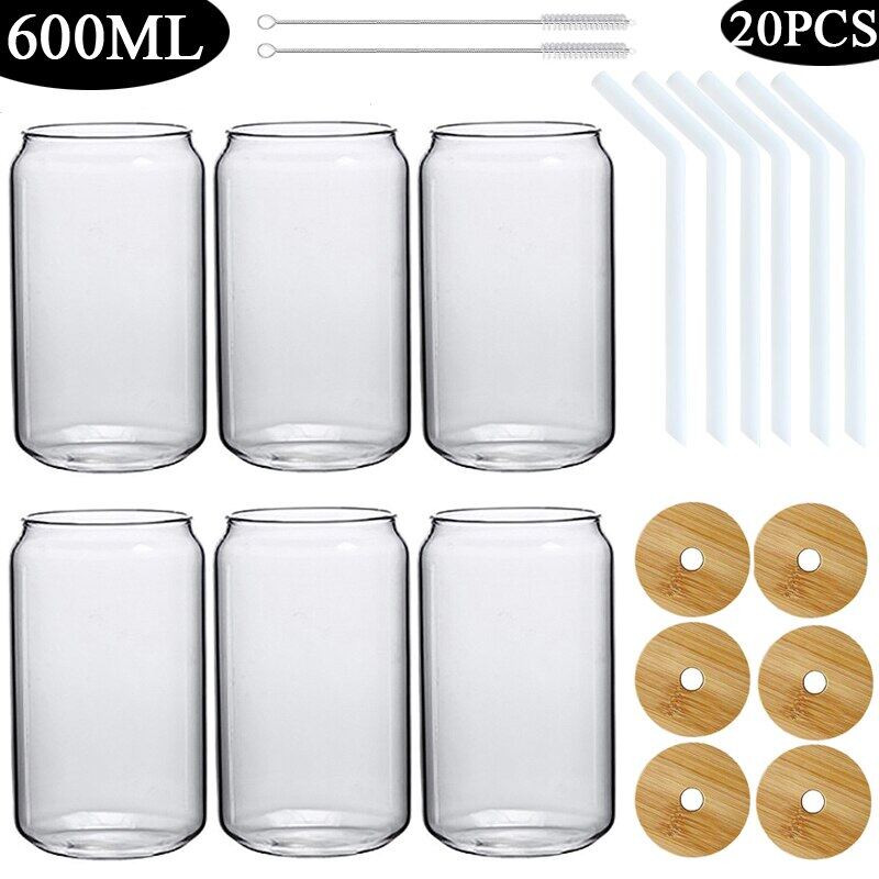 420/600ML 2-6PCS Transparent Glass Cup With Lid Straw Bubble Tea Cup Juice Coffee Beer Can Milk Mocha Breakfast Mug Drinkware